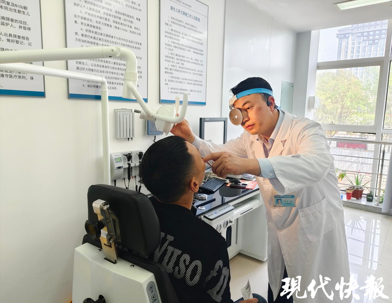 当天下午,现代快报记者来到盐城市三院,王荣正在给过敏性鼻炎患者检查。