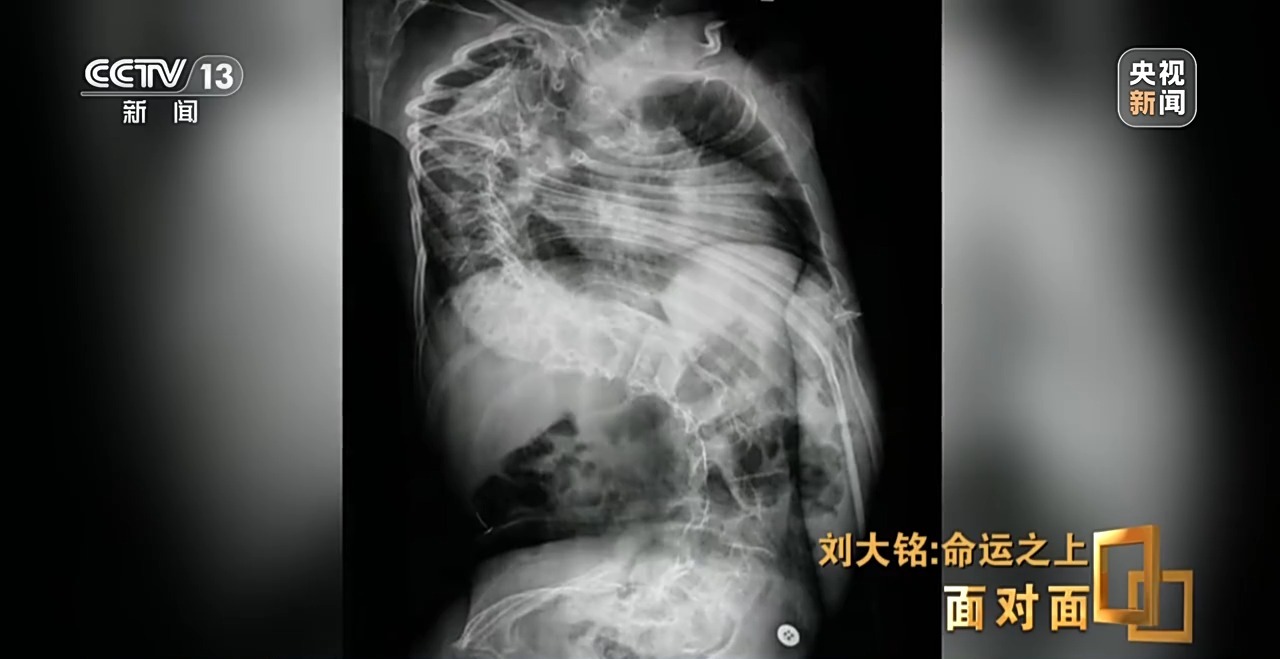 读初中的时候,刘大铭的脊椎开始发生形变,从最初的酸痛演变到压迫心脏、肺部、胃乃至神经,最终不得不离开学校,在3个月内接受了两次大的手术。术后他的胸口到脚踝都被打上了石膏,整个人像木乃伊一样,被固定了183天。