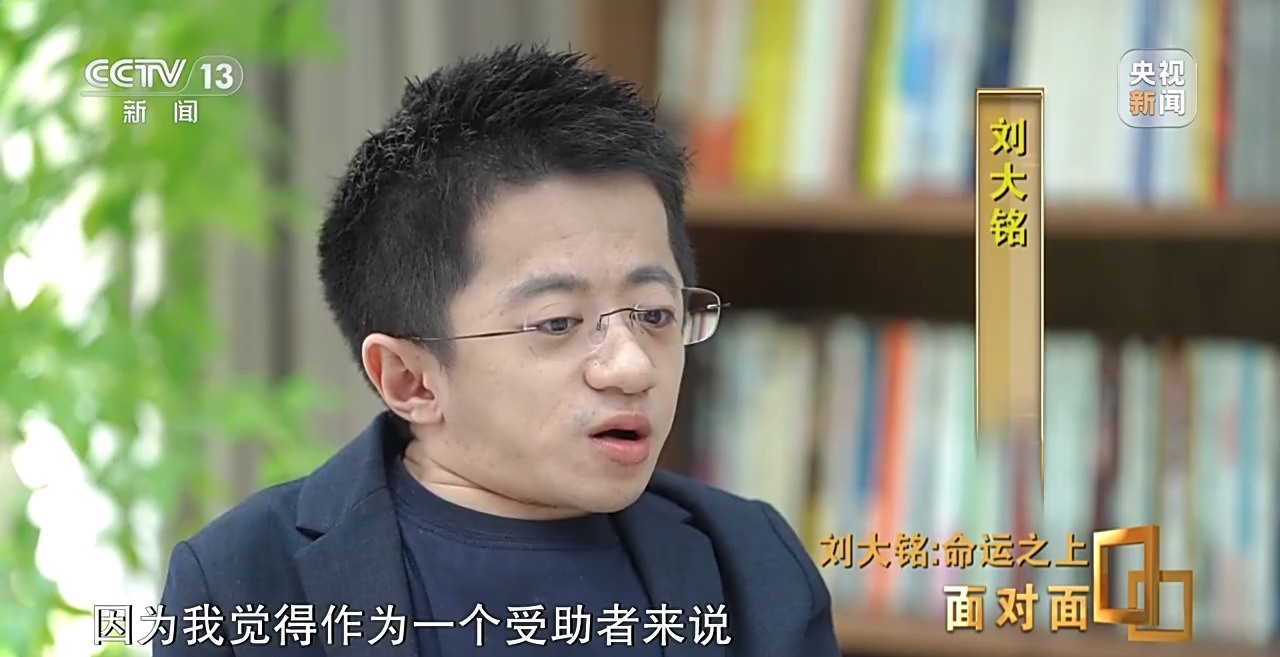 刘大铭:因为我觉得作为一个受助者来说,我曾经得到了非常多的帮助。当你获得了充分的爱之后,你不能只享受它,你需要把爱在接受的同时还要回馈出去。