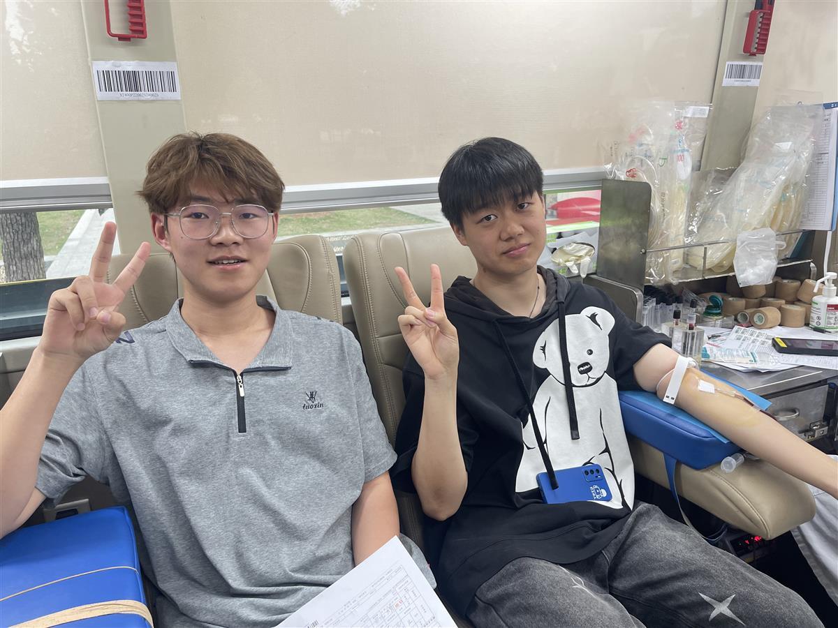 除了退伍大学生,当天还有许多同学自发组团前来献血。即将毕业的大四学生熊子博和刚入学的大一新生周熊就是学生代表。
