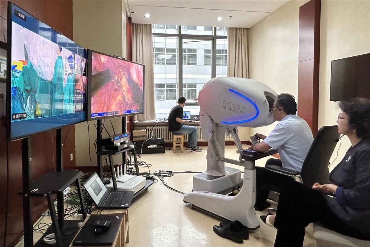 5月24日上午,武汉大学中南医院联合中国人民解放军总医院顺利开展了妇科国产精锋腔镜手术机器人远程手术。此次手术跨越1200公里,连接了武汉与北京两地国产机器人设备,完成了术中病灶和组织的精准切除和缝合等操作。在北京大学人民医院党委书记王建六教授和妇科孙秀丽主任手术直播团队的支持下,该手术全程在第36届国际妇科内镜学会(ISGE)学术会议暨北京大学妇科肿瘤学术会议上同步进行了直播。这也是全球妇科领域的首台直播远程手术,在国际舞台上展现了妇科微创领域的中国智慧和中国风采。