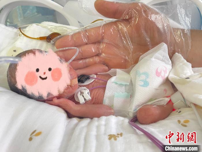 出生体重仅600克,近乎成人巴掌大小。安徽省儿童医院供图