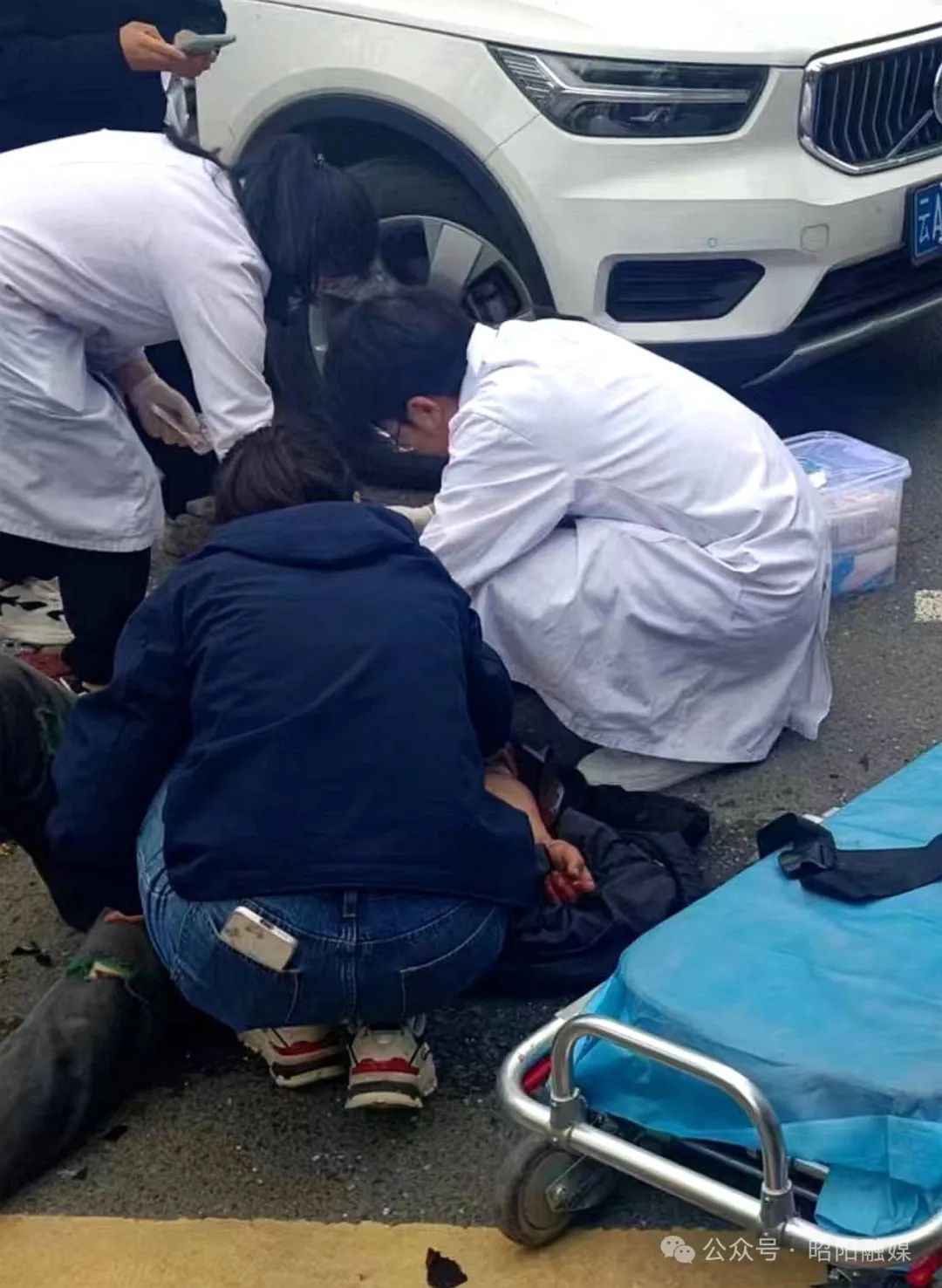 跪在伤者身边,开始实施紧急救援。