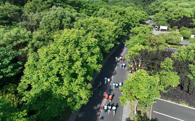 夏季在树荫下跑步,对跑者来说是个防晒的好选择。资料图/新华社