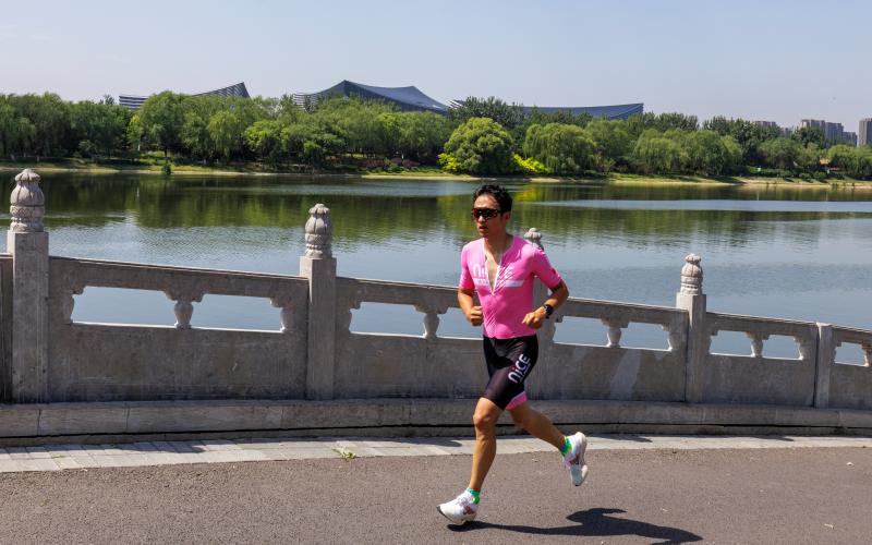 6月中旬,北京(通州)大运河文化旅游景区,一名跑者在北运河畔跑步。新京报记者王子诚摄