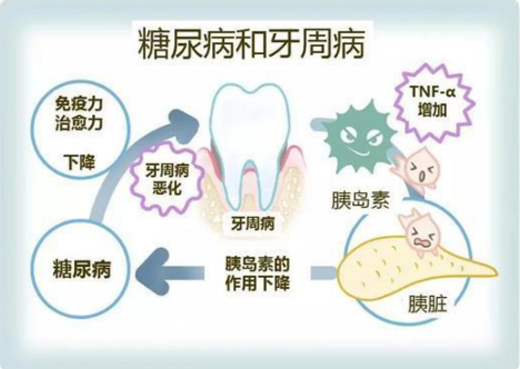 相反,牙周炎作为一种慢性炎症,它的存在往往会使得炎症介质的释放出现增多,这些介质在进入到血液循环中后,便会进一步影响胰岛素的作用,使得血糖控制更加困难。也就是说,牙周炎和糖尿病之间是存在着一种互相加重的双向关系的。