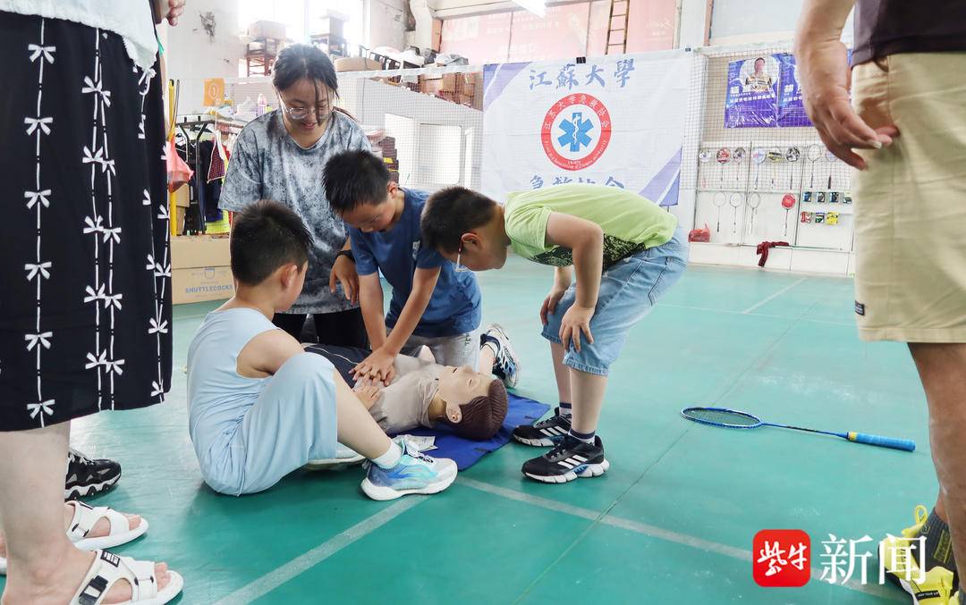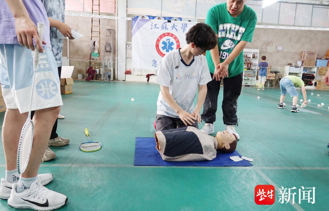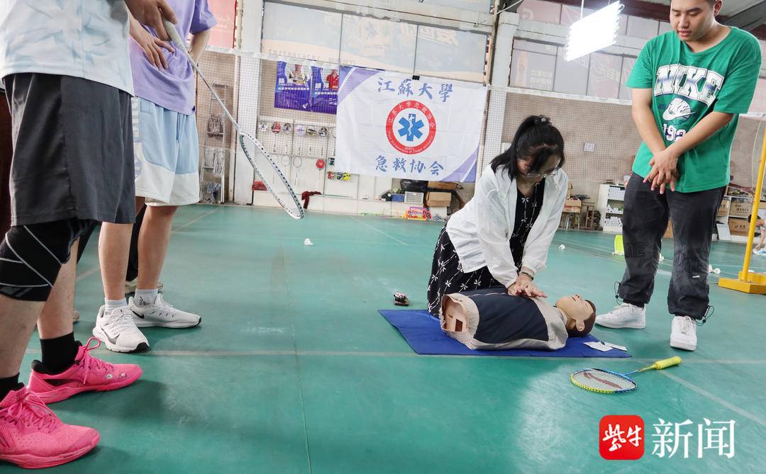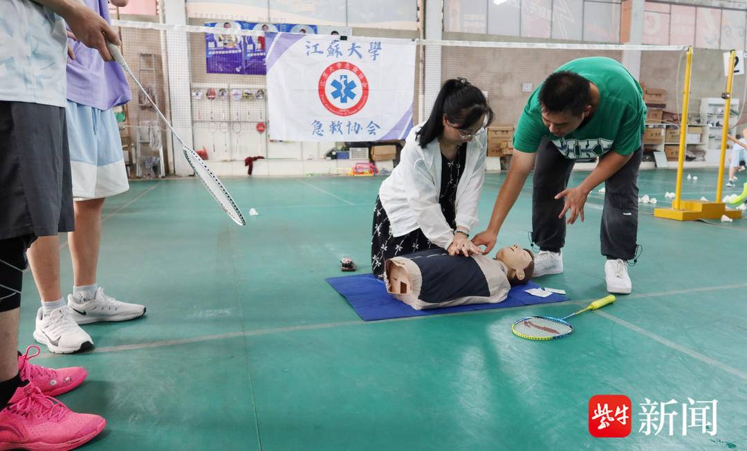 扬子晚报网7月3日讯(记者万凌云通讯员唐虹文/摄)7月3日上午,江苏大学急救协会和镇江市三院的急救医务人员,同杨振羽毛球馆负责人,为预防运动猝死,共同将徒手心肺复苏操作公益培训课开进了羽毛球馆。