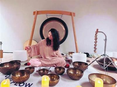 “85后”的女孩小陆取名布鲁,是走在颂钵疗愈师中的一员。
