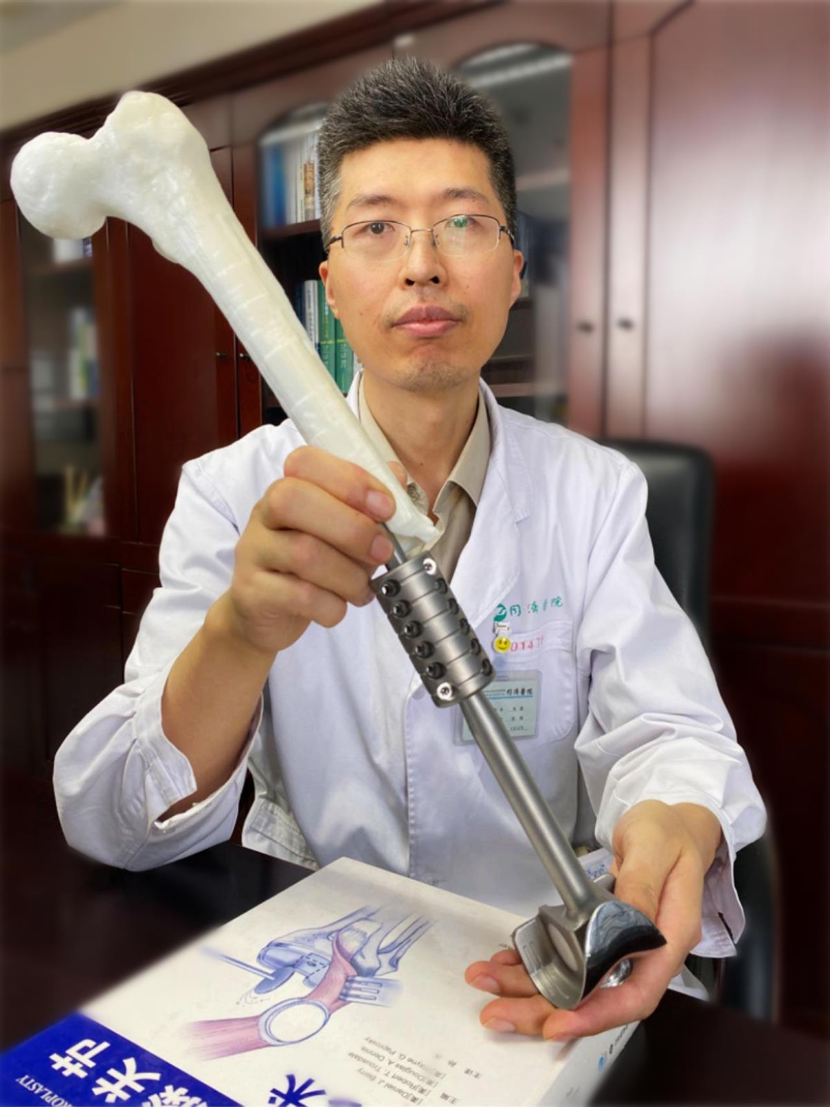 “最保险的方法是找到合适的零件,对大腿这部分的假体进行置换。”副主任医师朱波在仔细查看高锐的影像学资料后,发现断裂点在大腿下半段的假体处,这种方法需要将大腿段的假体取出来进行置换。但存在两个问题,一是假体深至股骨近端,需要人工把大腿骨劈开才能将填塞其中的骨水泥清理干净,骨质损失比较多。二是目前市面上没有类似型号的假体。“另一种方法就是全面翻修,将整个假体和连接件都换掉,换成3D打印的或者是目前有的假体,但手术切口约半米,对身体的创伤太大,同时也面临骨质损失的问题。”