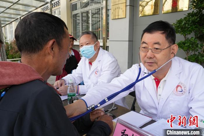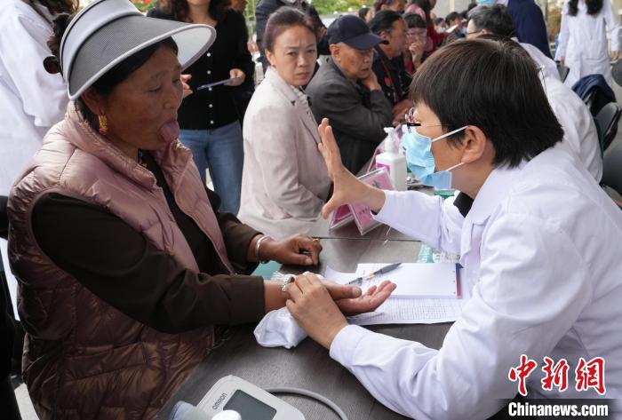 7月9日,“同心·共铸中国心”志愿者深入四川康定开展医疗帮扶活动,来自北京多家医院的医疗专家针对当地民众发病率较高的相关疾病在康定市人民医院开展免费义诊工作。图为义诊现场。 中新社记者安源摄