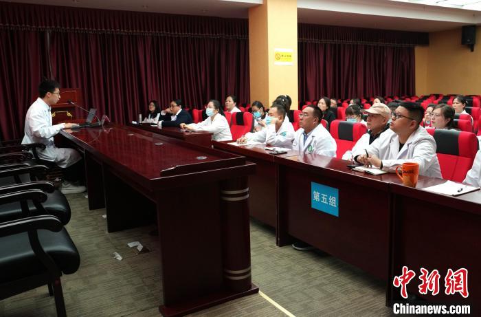 7月9日,“同心·共铸中国心”志愿者深入四川康定开展医疗帮扶活动,来自北京多家医院的医疗专家针对当地民众发病率较高的相关疾病在康定市人民医院开展免费义诊工作。图为专家学术讲座现场。 中新社记者安源摄