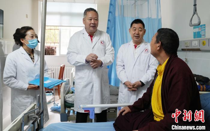 7月9日,“同心·共铸中国心”志愿者深入四川康定开展医疗帮扶活动,来自北京多家医院的医疗专家针对当地民众发病率较高的相关疾病在康定市人民医院开展免费义诊工作。图为医疗专家在康定市人民医院带教查房现场。 中新社记者安源摄