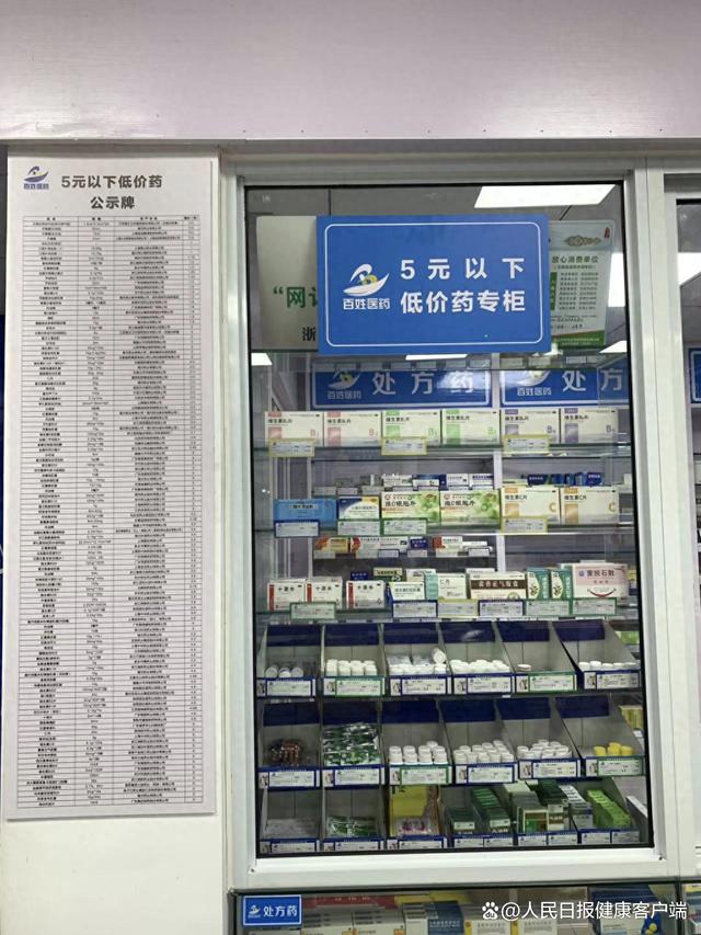浙江舟山百姓大药房“5元以下低价药专柜”。“舟山发布”微信公众号图