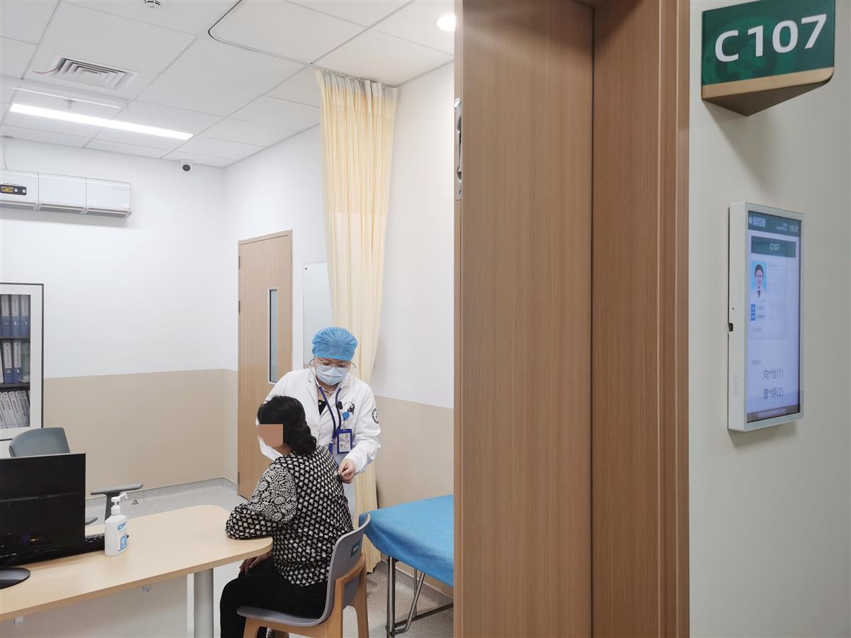 该院杨春湖院区呼吸与危重症医学科黄昏门诊内医生在为患者听诊
