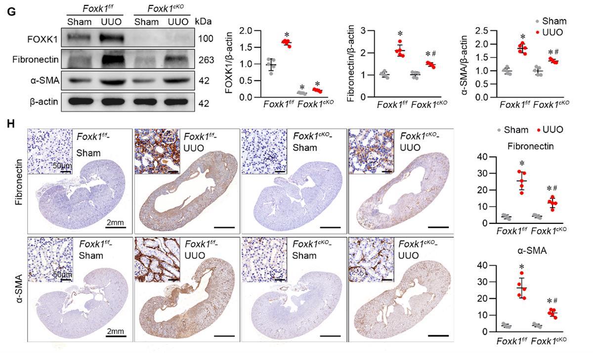随着肾纤维化进展,FOXk1在近端TECs中表达显著增强