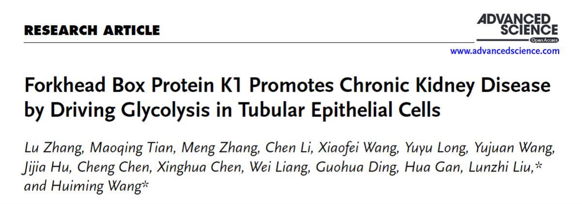 7月31日,这项研究成果发表于国际知名学术期刊《Advanced Science》(先进科学,IF:14.3)。王惠明教授团队经过深入研究,揭示了FOXK1分子如何通过调控肾小管上皮细胞(简称TECs)的糖酵解过程,导致肾脏纤维化的发生和发展。简单来说,就是FOXK1能够影响肾脏细胞的能量代谢方式,进而引发肾脏的损伤和慢性肾脏病的恶化。