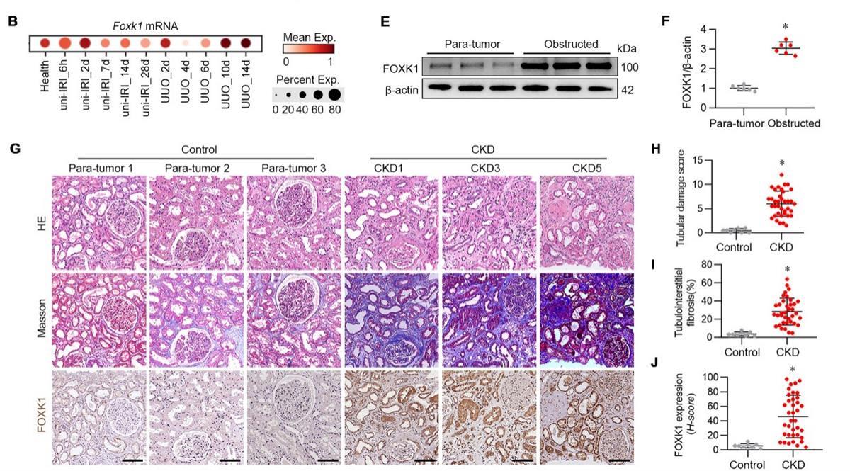 对此,王惠明团队找到了答案:名为“FOXK1”的分子在糖酵解启动过程中发挥了关键作用。研究发现,通过调节FOXK1,可以减轻肾小管上皮细胞的损伤和纤维化,这意味着FOXK1可能是一个潜在的治疗靶点。
