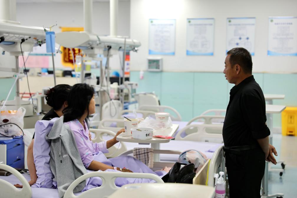 病患家属为行动不便的病患带来从家里熬好的热粥。家人的照顾和关爱是急诊室内最朴实而温暖的场景。