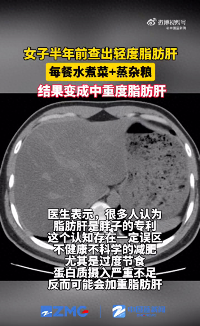 近日,宁波29岁的刘女士万万没想到,吃素半年脂肪肝的程度反而加重了。原来,刘女士半年前在体检中查出轻度脂肪肝,下决心好好减肥。她认为平时荤的吃多了,才会得脂肪肝。于是戒掉了荤腥和精致碳水,每餐基本都是水煮叶子菜加上蒸杂粮。这半年来,刘女士的体重减掉了10斤左右,腰腹也明显平坦了,结果B超检查提示,脂肪肝为中重度。医生表示,很多人认为,脂肪肝是胖子的专利。这个认知存在一定误区。不健康不科学的减肥,尤其是过度节食,蛋白质摄入严重不足,反而可能会加重脂肪肝。