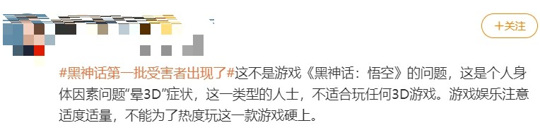 不过,游戏玩家中,却有人玩“吐”了。不少网友反馈,玩《黑神话:悟空》时出现了头晕不适、甚至呕吐等“晕3D”症状。