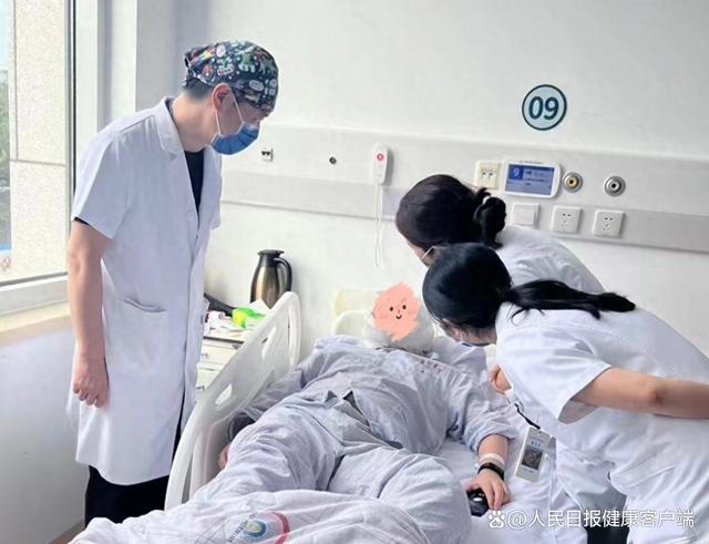 8月初,中国医学科学院整形外科医院颅颌面整形科主任医师靳小雷(左一)查房看望手术后的患者。受访者供图