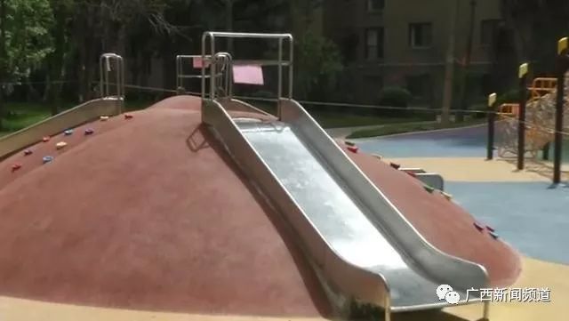 提醒:夏日高温炎热,户外游乐设施金属、塑料表面温度都很高,儿童皮肤娇嫩,务必谨防烫伤!