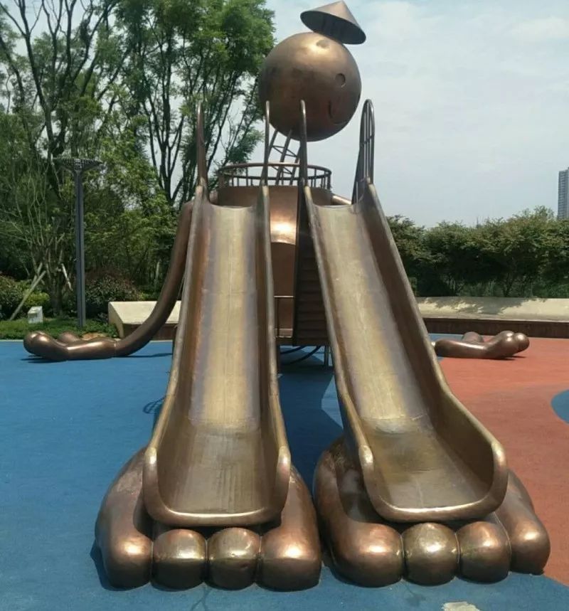 户外设施例如滑梯、体育锻炼器材、休闲椅等经过夏季高温暴晒,无论是金属或者塑料材质,表面温度都会急剧升高,儿童皮肤娇嫩,不留神直接坐上去极易发生烫伤事故!