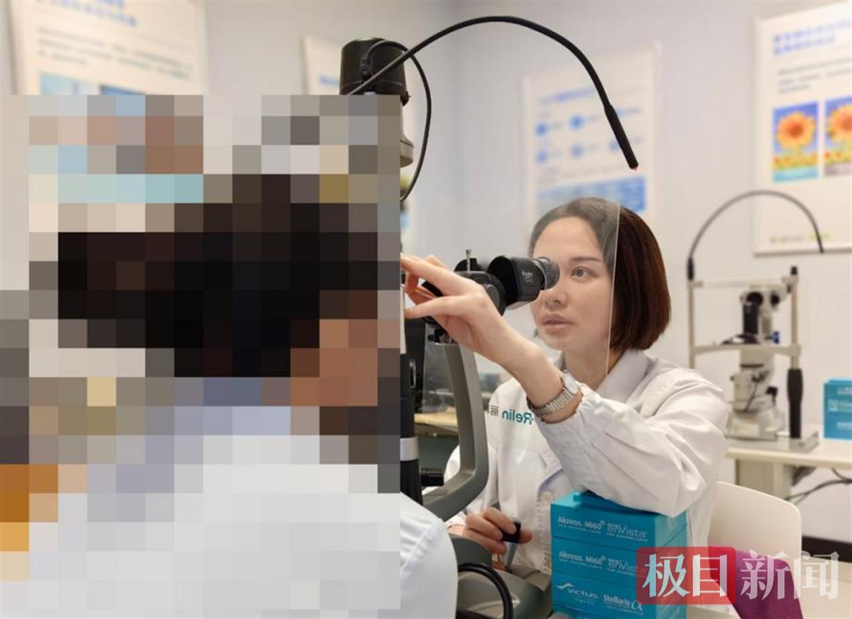 方艳梅医生在裂隙灯下为患者检查(武汉爱尔眼科洪山医院供图)