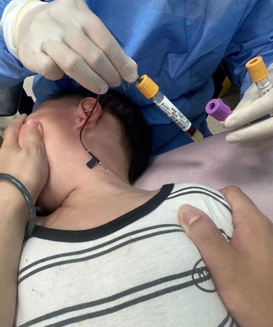 该女子称,儿子多次呕吐、腹泻一周,静脉抽血4次,后续诊断为心肌损害、中毒,并晒出了儿子的抽血照片和就医记录,显示“心肌损害,食物中毒复查”。“一个两岁半的小朋友,脖子静脉血,按出血口足足按了15分钟。在我没有任何处理方案之前,商家先给了我律师函……”