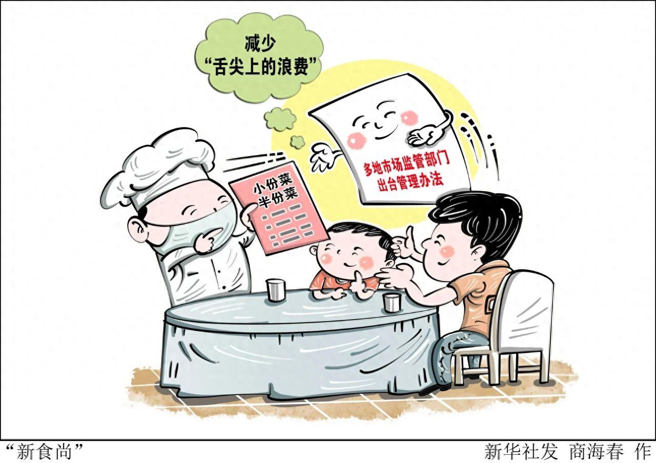 “吃得适量”正在成为用餐新风尚。不久前,山西太原一女生点完菜后发现分量太大吃不完,将没吃的菜低价“推销”给隔壁桌,隔壁桌顾客欣然接受。有的餐厅推出未上桌菜品可“无理由退菜”服务,避免剩餐,还有些餐厅的服务员在顾客点餐时帮忙预估菜品数量,劝导顾客适量点餐。《2023中国餐饮业年度报告》的数据显示,实施制止餐饮浪费的举措后,接受调研的企业餐厨垃圾量平均减少了11.2%。