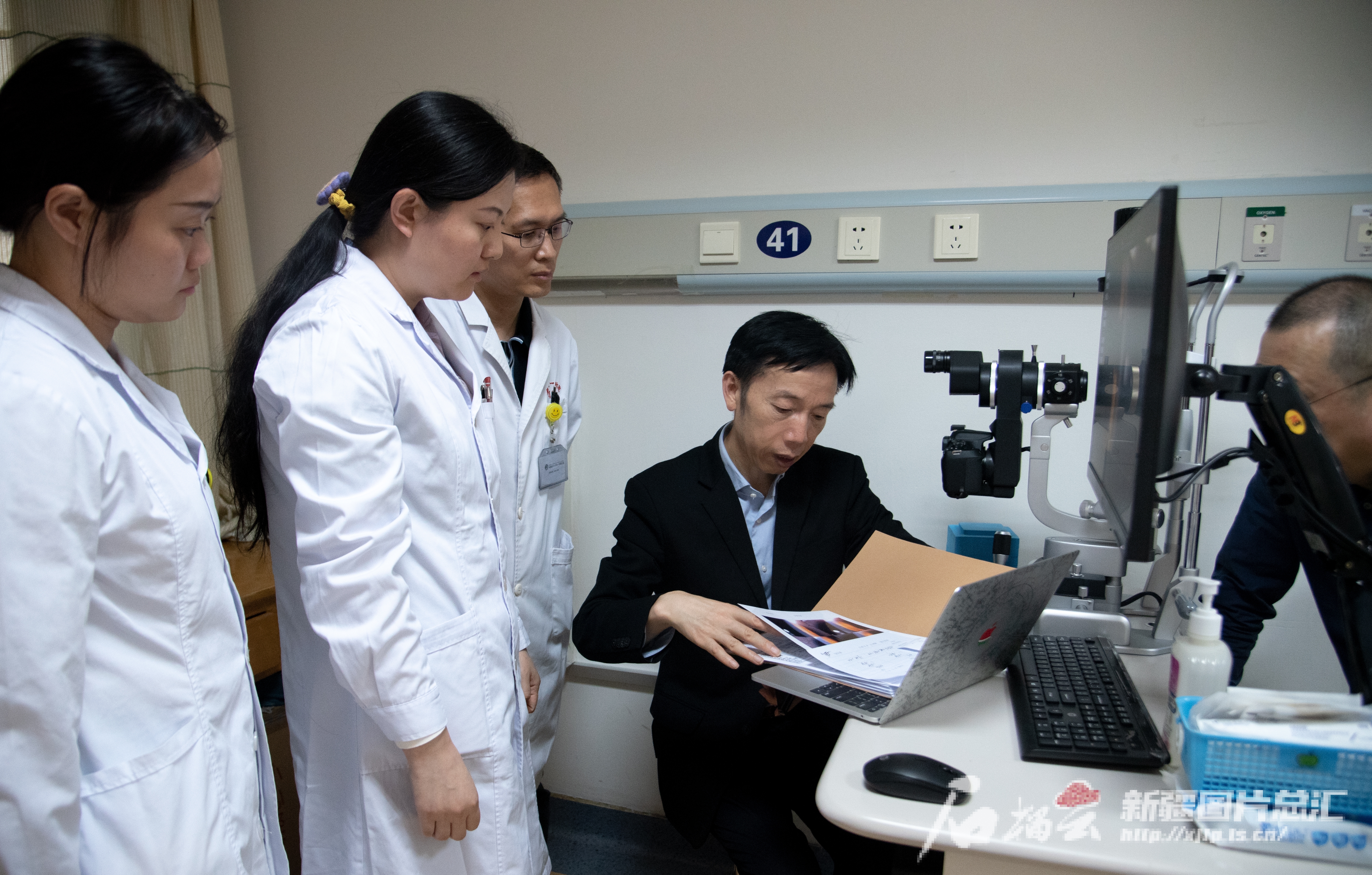 9月19日,新疆医科大学第一附属医院眼科病区,复旦大学附属眼耳鼻喉科医院院长周行涛(右二)为患者会诊。新疆医科大学第一附属医院供图