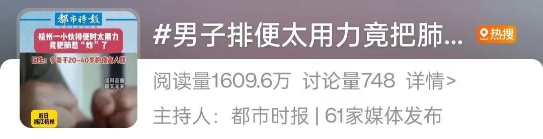 近日,#男子排便太用力竟把肺憋炸了#登上热搜!