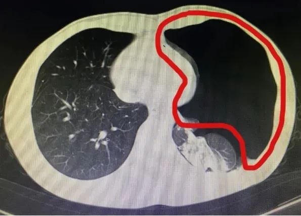 经医生检查后发现,小陈得了“气胸”,左侧肺被压缩了将近90%。