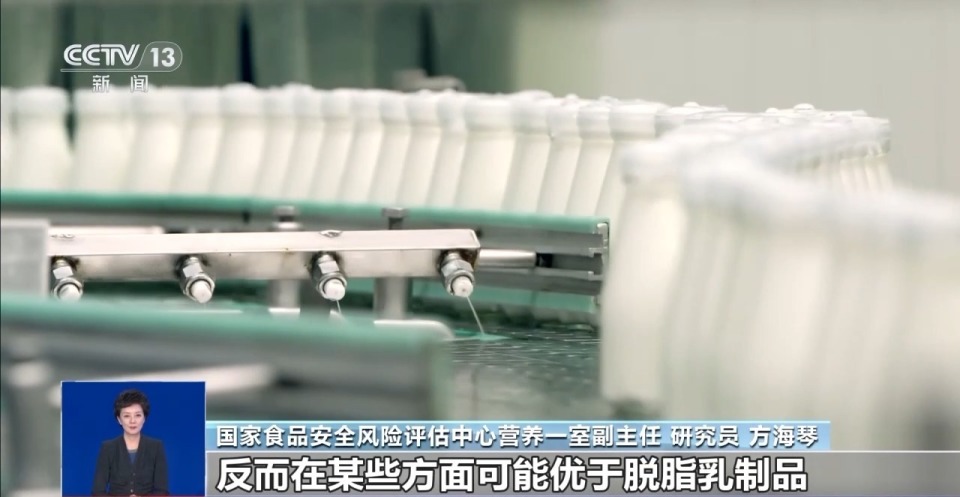 国家食品安全风险评估中心营养一室副主任 方海琴:相较脱脂奶而言,全脂奶口感更为浓郁,香气更为丰富,还保留了更多的脂溶性维生素(如维生素A、D、E、K),这些维生素对健康有益,尤其有助于钙等矿物质的吸收利用。此外,全脂奶中富含磷脂,这种成分对婴幼儿脑部及智力发育有着重要作用,对青少年及成年人也具有一定的改善记忆力、减轻压力的作用。