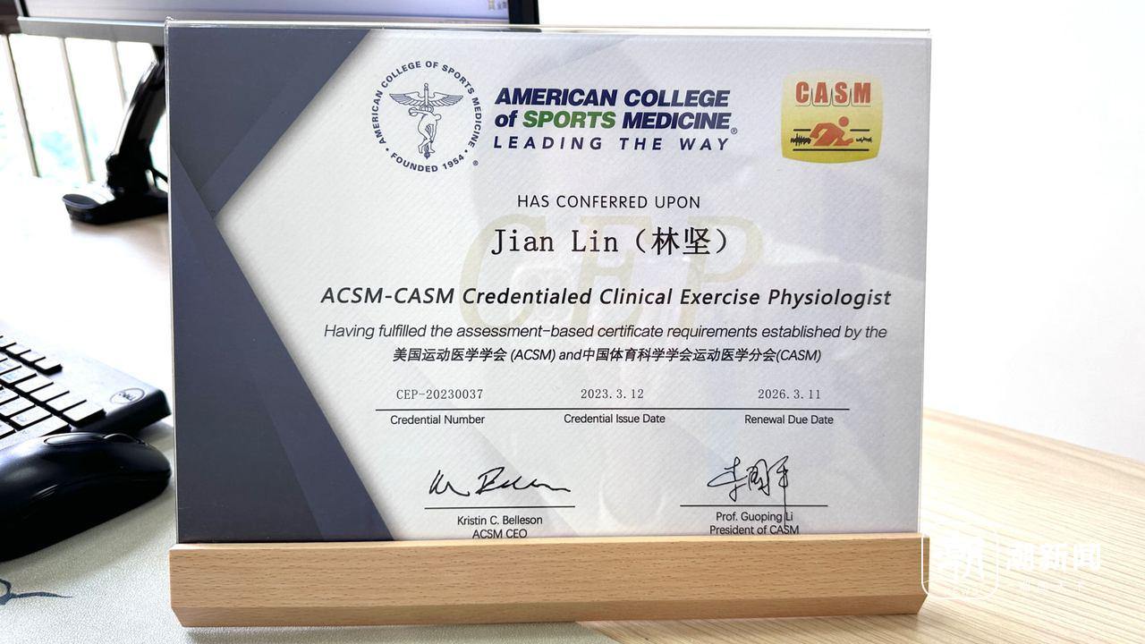 一年前,林坚拿到了美国运动医学学会和中国体育科学学会运动医学分会联合颁发的运动处方师证,也是国内首批考证的临床医生。《“十四五”健康老龄化规划》中提到,我国78%以上的老年人至少患有一种以上的慢病,但其是很多慢性疾病是可以不吃药,能通过科学的运动和饮食来改善的。