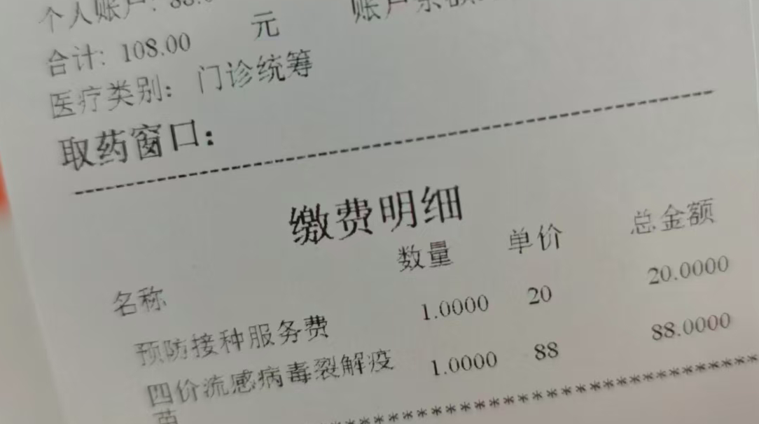 来自江苏南京的吴女士(化名)每年都会给自己和家人接种流感疫苗。今年10月上旬,她到家附近的社区卫生中心接种流感疫苗时发现,同一家厂商的四价流感病毒裂解疫苗(成人),去年接种花费了140多元,今年降至108元。