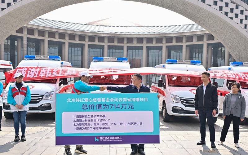 据了解,此次公益行动是韩红基金会继2020年“韩红爱心·百人援滇”大型医疗援助公益行动后,第四次对云南进行医疗援助。在本次公益行动中,韩红基金会为云南省捐赠30辆转运型救护车及乡村医生巡诊包500个,并为云南基层急诊、超声、康复、产科、新生儿科医护人员提供为期3个月的专科培训,总价值约714万元。