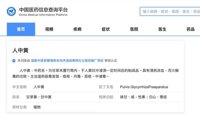另外,中国医药信息查询平台显示,中药“人中黄”为甘草末置竹筒内,于人粪坑中浸渍一定时间后的制成品。具有清热凉血,泻火解毒的功效。主治温热疫毒发斑,痘疮,丹毒,恶疮,中诸毒。