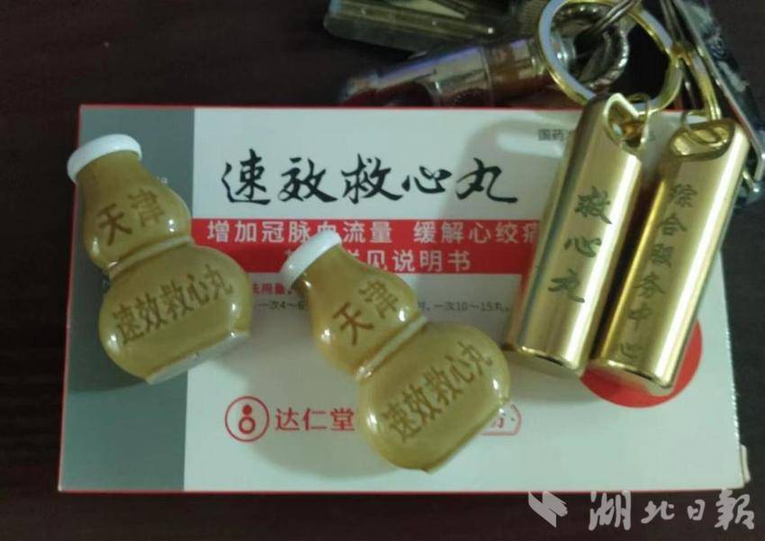 “应急小药筒方便随身携带,可与钥匙配挂在一起,也可直接挂在工衣口袋上,以便快速救急取用救心丸。”