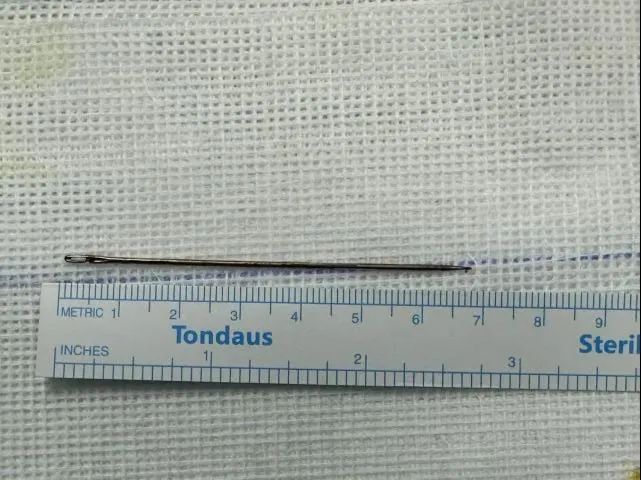 经过精细的操作,成功从患儿尿道中取出一根长达6.8厘米的缝针,有效解除了患儿的病痛与危机。