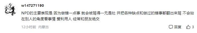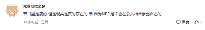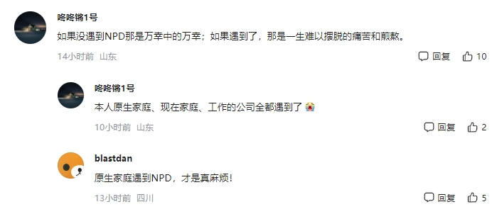 NPD,中文全称是自恋型人格障碍。网民的讨论中,无论是综艺节目里的名人,还是身边的亲人、朋友,甚至自己都符合几条广为流传的NPD的特征。一些自称为“NPD受害者”的网友在社交平台上发帖分享自己的经历。