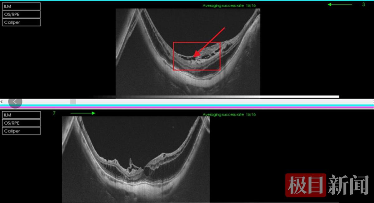 方婆婆的视网膜组织发生分离 (湖北爱尔眼科医院供图)