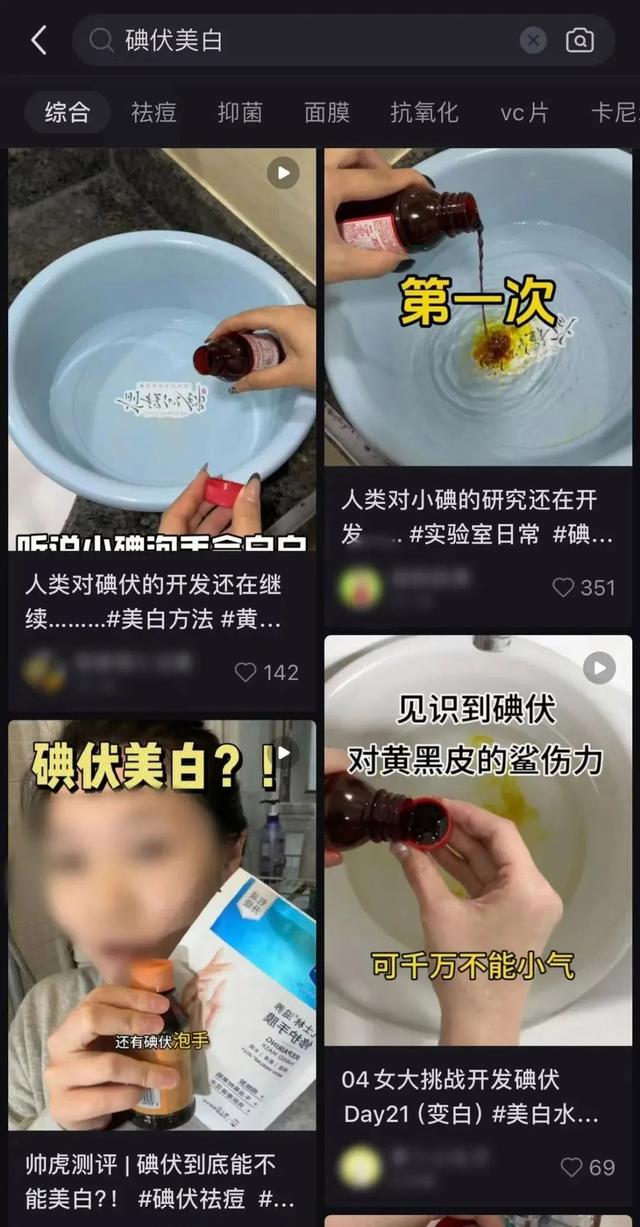 不过,也有网友在尝试后发表了“避雷帖”:“碘伏气味刺激,涂满全脸后被刺激得眼泪哗哗直流”“用碘伏涂抹面部不久后便感觉皮肤瘙痒、红肿”“不知道是不是浓度问题,我上脸有刺痛感”……