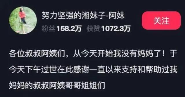 就在今年11月22日,百万粉丝抗癌网红“努力坚强的湘妹子-阿妹”也因胃癌去世,终年53岁。
