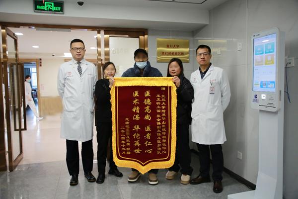 12月9日上午,活体肝移植术后的毛先生和家人手持锦旗,早早来到华山医院8号楼14楼肝脏移植中心病房外,他们特地来向3个多月前将他从“鬼门关”拉回来的移植团队说一声:谢谢!谢谢你们救了我一命。