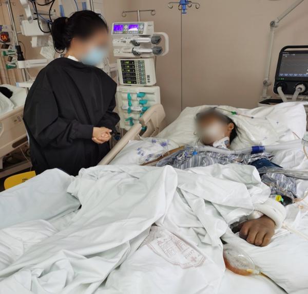 术后毛思思恢复十分顺利,7天便顺利出院,出院当天,她迫不及待地来到重症监护室,探视了尚处恢复期的父亲。父爱如山,爱得深沉;女儿反哺,亦是如此。此刻病床旁的毛思思关切地望向父亲,并无太多言语,却让在场的医护人员无不为之动容。