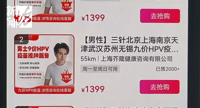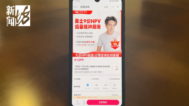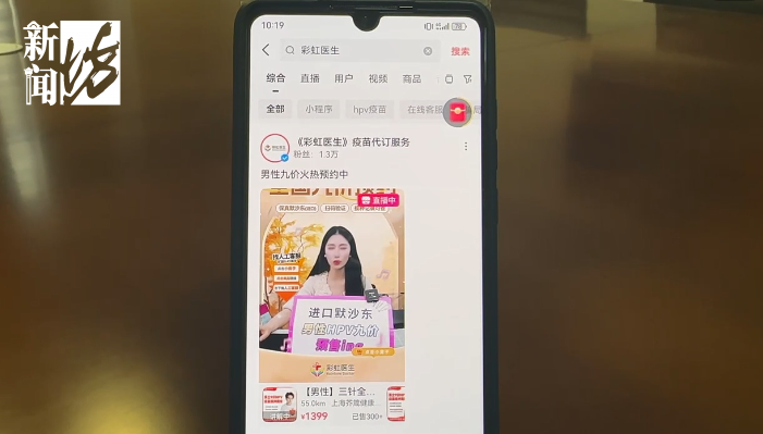 进入这个提供疫苗代订服务的直播间,记者看到标注"进口默沙东、男性HPV九价预售"等字样的手举牌格外显眼,主播正在介绍标价为1399元的"男士九价HPV疫苗接种服务",显示的销量已达2000+。