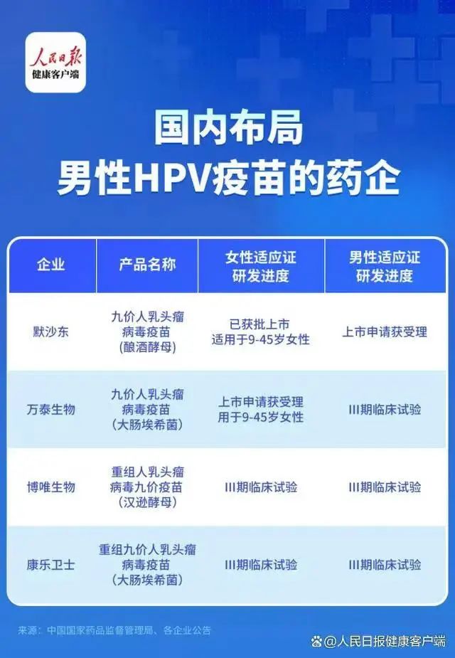 记者查询发现,早在去年9月,默沙东九价HPV疫苗男性适应症在中国的上市申请已获国家药品监督管理局药品审评中心受理,还有多家药企也开始临床研究。