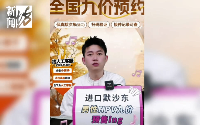 记者了解到,目前男性HPV疫苗尚未获得批文,且暂未官宣上市的消息。但眼下,在某短视频平台上已经有一些店铺号称在"预售"男性HPV疫苗,并承诺在明年春节左右就可以正式接种。