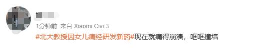 北京大学肖瑞平教授透露,她的女儿就因此备受痛经的折磨,有时候吃6片止痛片都没用。为此,她开始研究这方面的课题,目前一款副作用更小的新药正在进行二期临床试验,并得到了我国药监局突破疗法的认证。